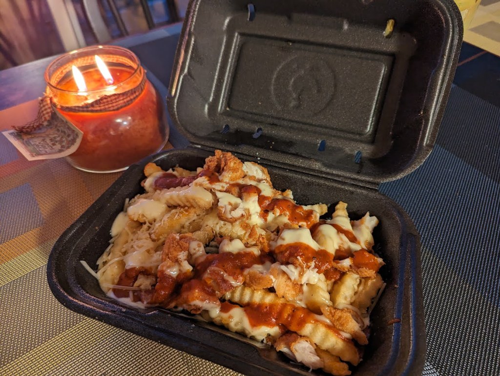 In an effort to not complain for too long, the remainder of the dish was fine. The fries were good, (the ones unspoiled by the vile sauce brew) and the chicken was the same well-made chicken tenders cut into pieces that Zaxby’s offers. There were melted cheeses thought-out that were also palatable.